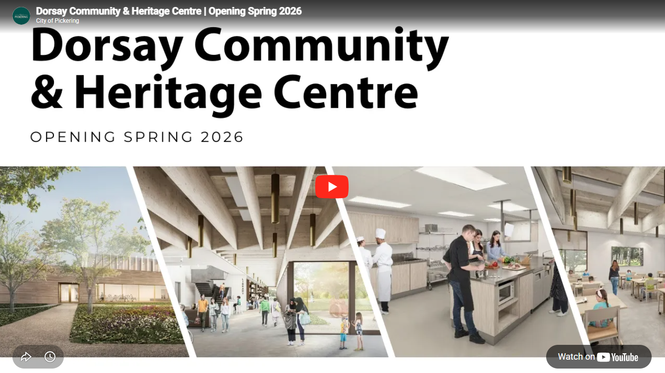 The Dorsay Community & Heritage Centre is Pickering’s newest cultural landmark and a stunning 44,000‑square‑foot destination where community, creativity, and heritage come together. Made possible through a landmark naming partnership with Dorsay Development Corporation, the Centre brings the Museum, Library, and Community Centre into one vibrant space offering cooking programs, arts and music classes, wellness activities, engaging events, and Pickering’s first dedicated exhibit gallery.